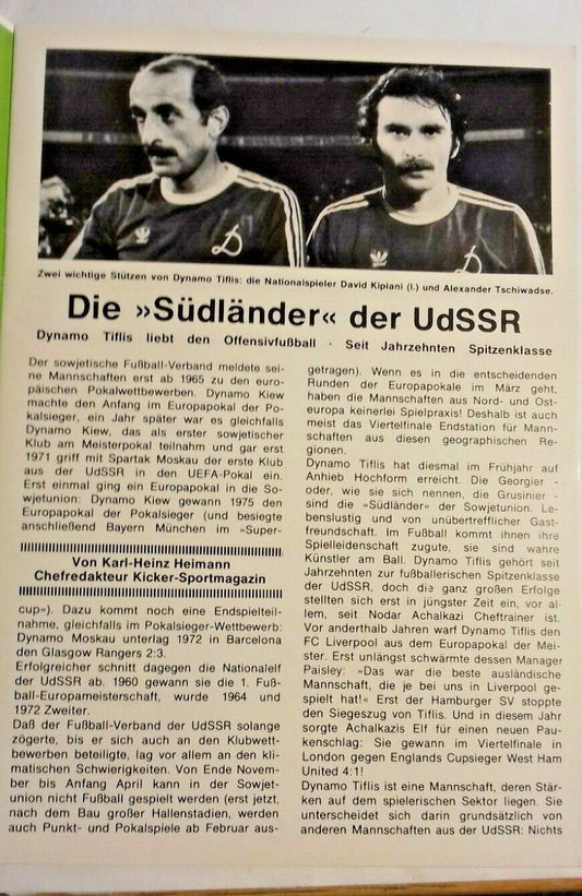 Dynamo Tiblisi v C Z Jena European Cup Winners Cup Final Used Programme 13/5/1981 Dusseldorf.