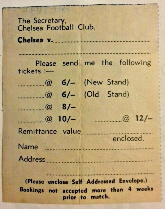 Chelsea v West Ham Utd F.A. Youth Cup 5th Round Single Card 3rd March 1962