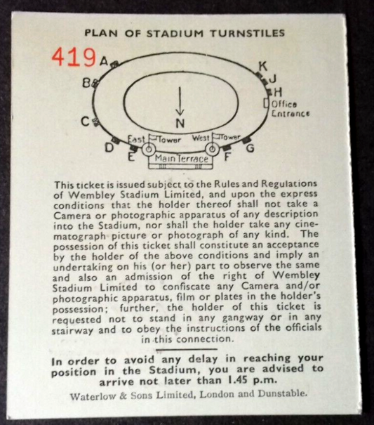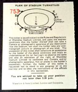 England v Argentina Match Ticket International Wednesday. May 9th 1951 Wembley.