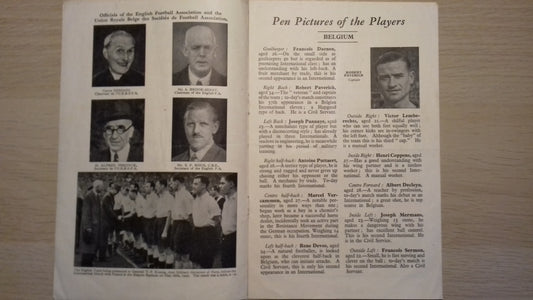 England v Belgium Match Programme Saturday 29th January 1946 Billy Wright Debut