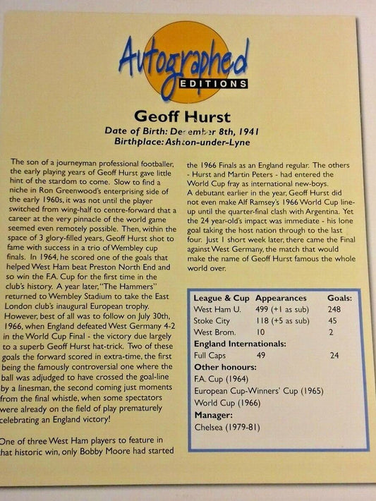 Geoff Hurst Signed Autographed Photo From Autographed Editions.