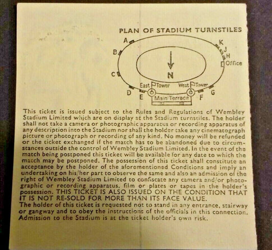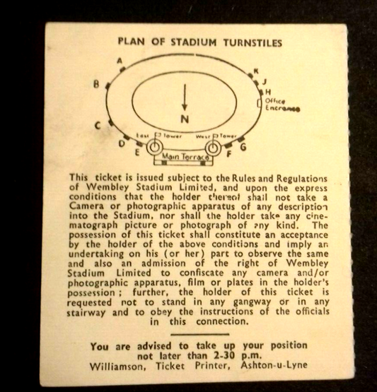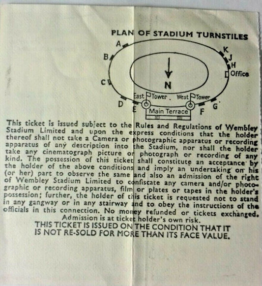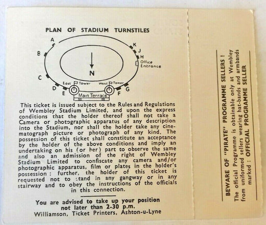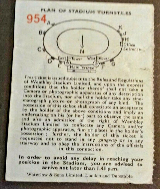 England v Wales Int. Vintage Football Match Ticket Wed. 10/11/1954 Wembley Stadium.