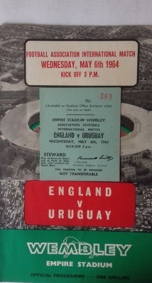 England v Uruguay Wednesday 6th May 1964 Programme & Stewards Ticket