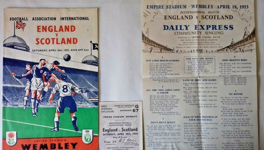 England v Scotland Used Football Match Programme Saturday April 18th 1953 + Ticket + Song Sheet