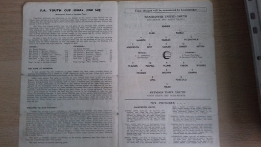 Manchester Utd v Swindon Town F.A. Youth Cup 2nd Leg Programme 30th April 1964
