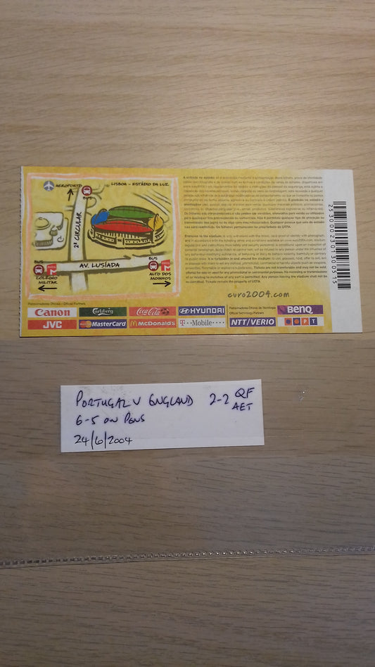 Portugal v England Used Match Ticket Euro 2004 Q/Final 24/6/2004