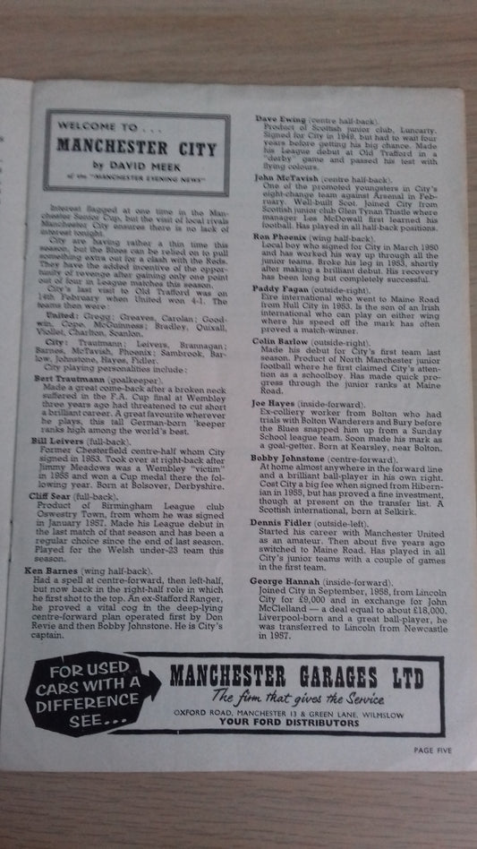 Manchester Utd v Manchester City Programme Manchester Senior Cup Final 13th April 1959