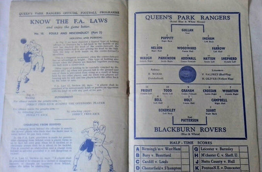 Queens Park Rangers v Blackburn Rovers Programme League Division 2 December 9th 1950.