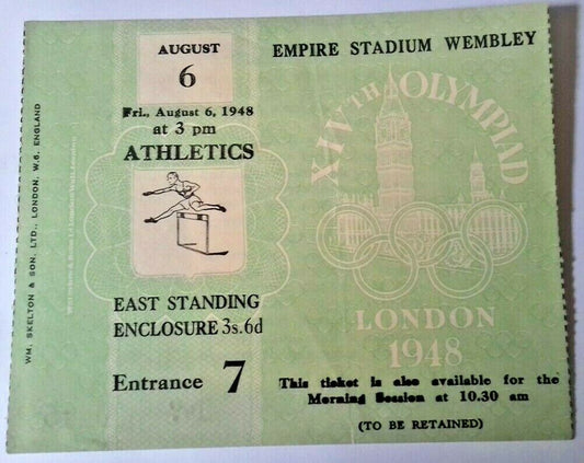 Olympic Games Ticket And Programme Of Events Athletics August 6th 1948 Wembley.