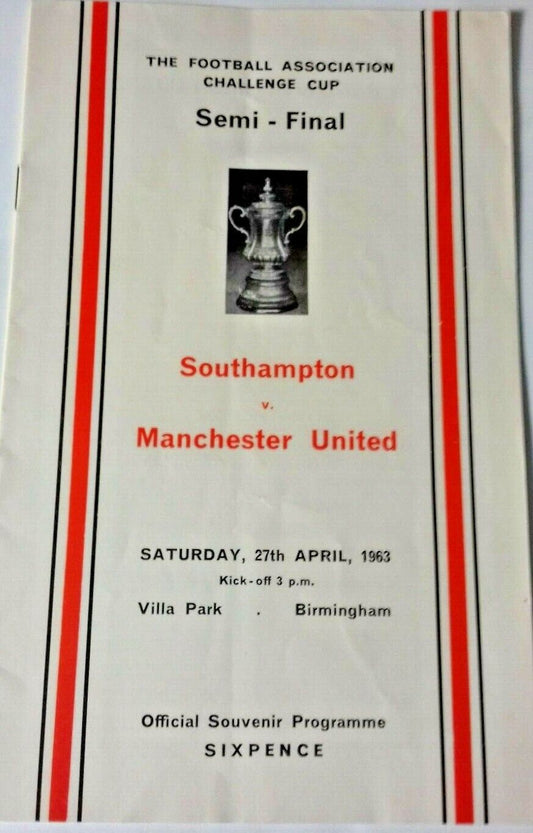 Southampton v Manchester Utd Programme +Ticket F.A .Cup Semi-Final 27/4/63 Villa Park
