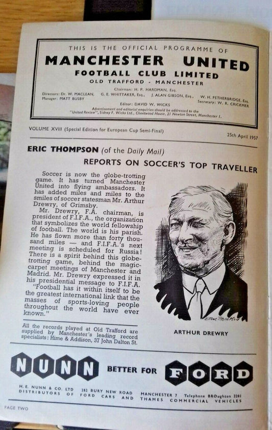Manchester Utd v Real Madrid Programme European Cup Semi-Final 2nd Leg 25/4/57
