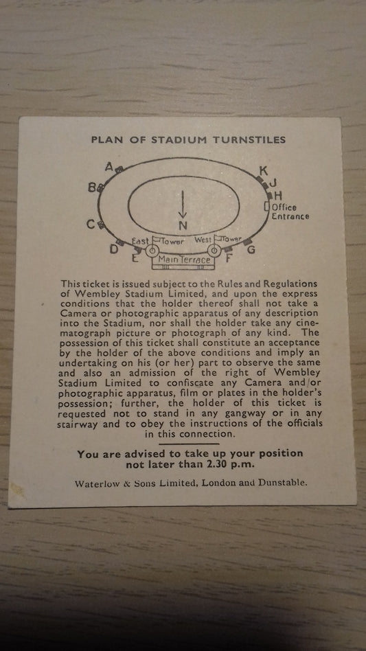 W.B.A. v Preston North End Match Ticket Saturday May 1st 1954 Wembley Stadium