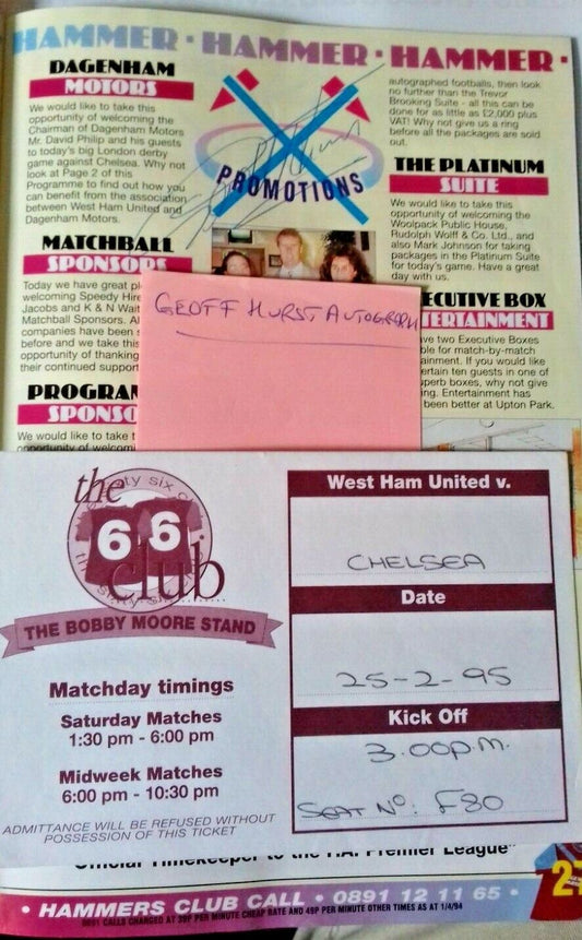 West Ham Utd v Chelsea Programme Autographed by Geoff Hurst 25/2/95 Upton Park.