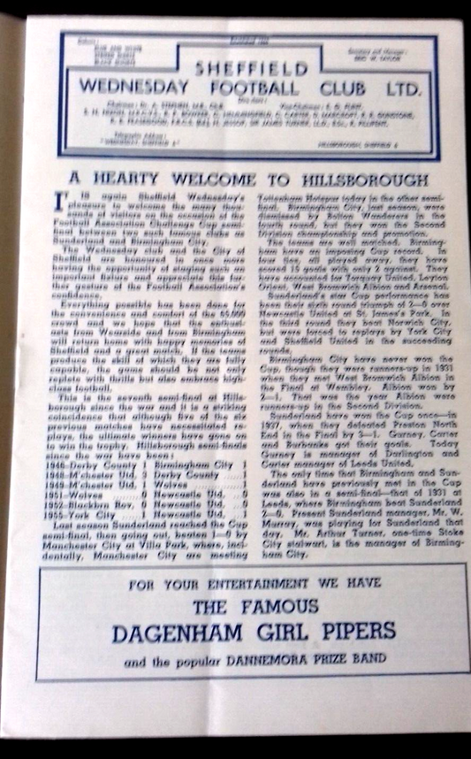 Sunderland v Birmingham City F.A. Cup Semi-Final Football Match Programme 17/3/1956 at Hillsborough