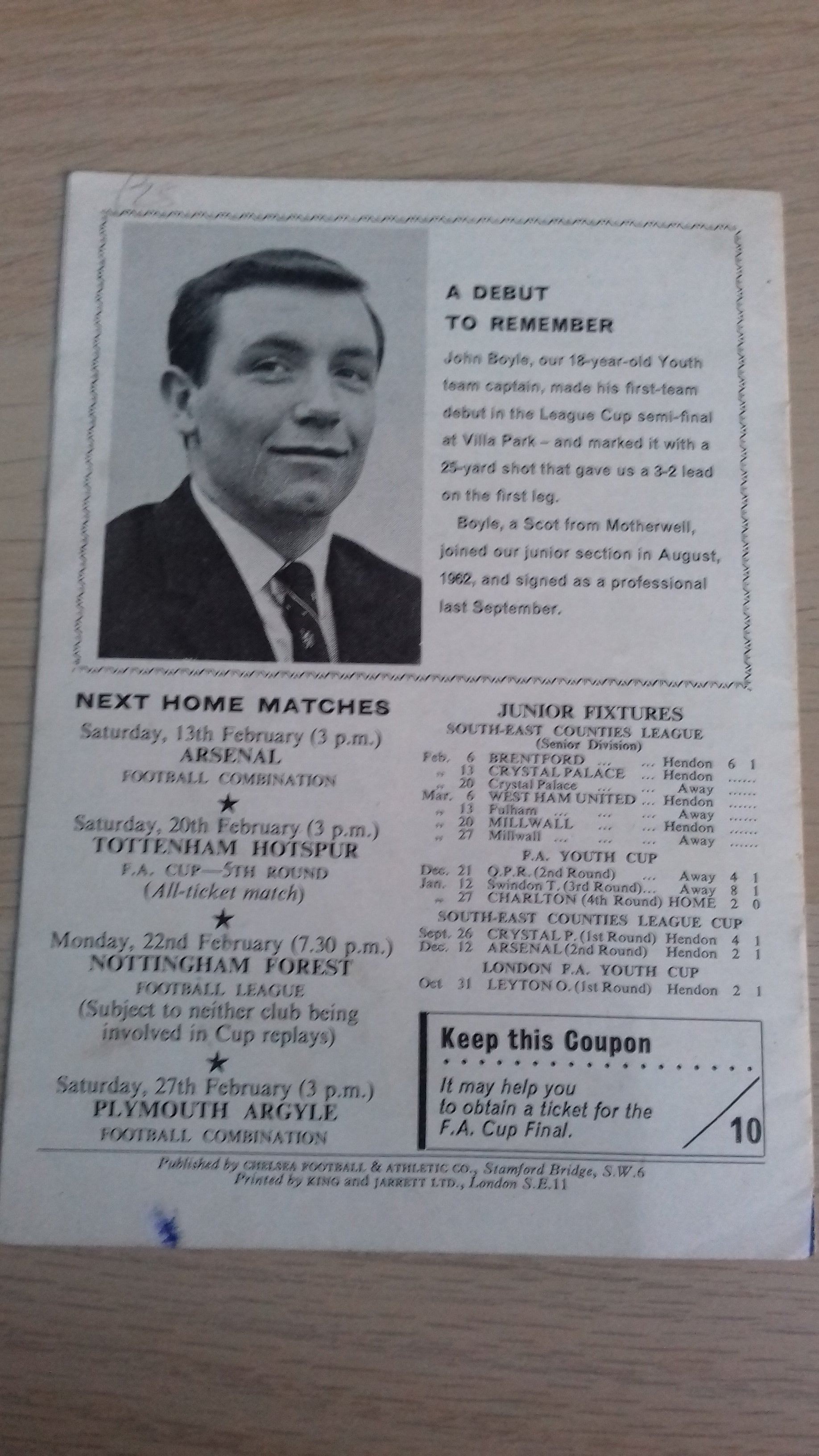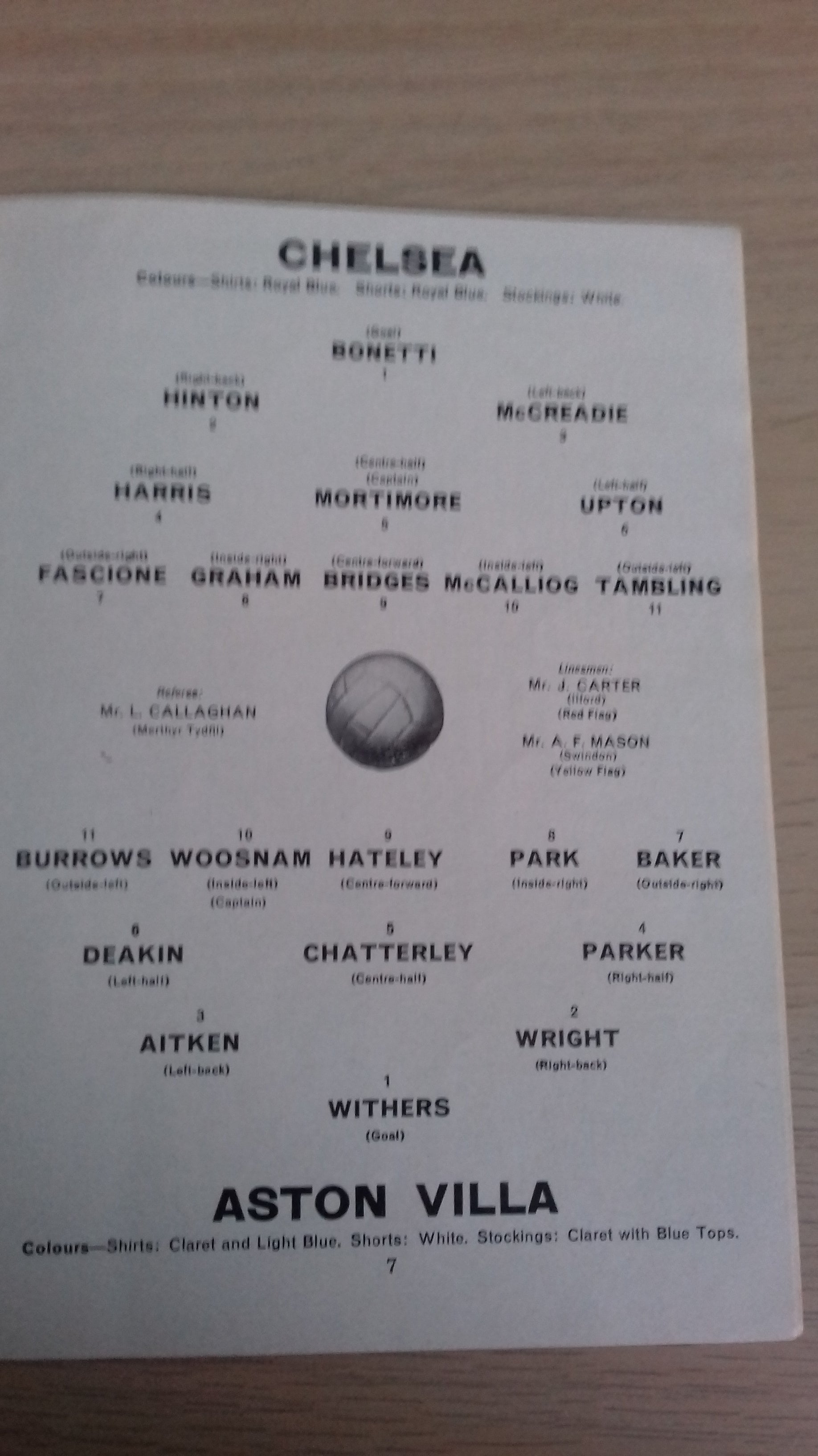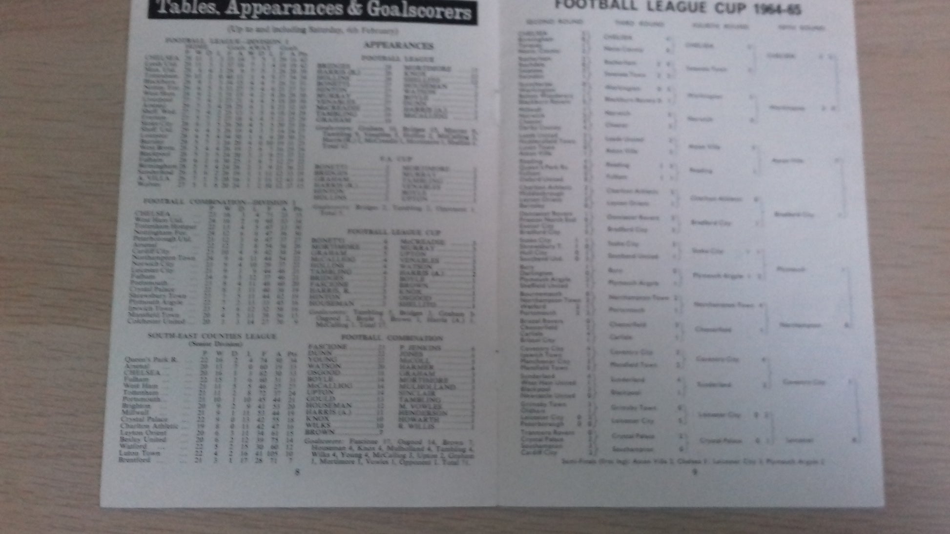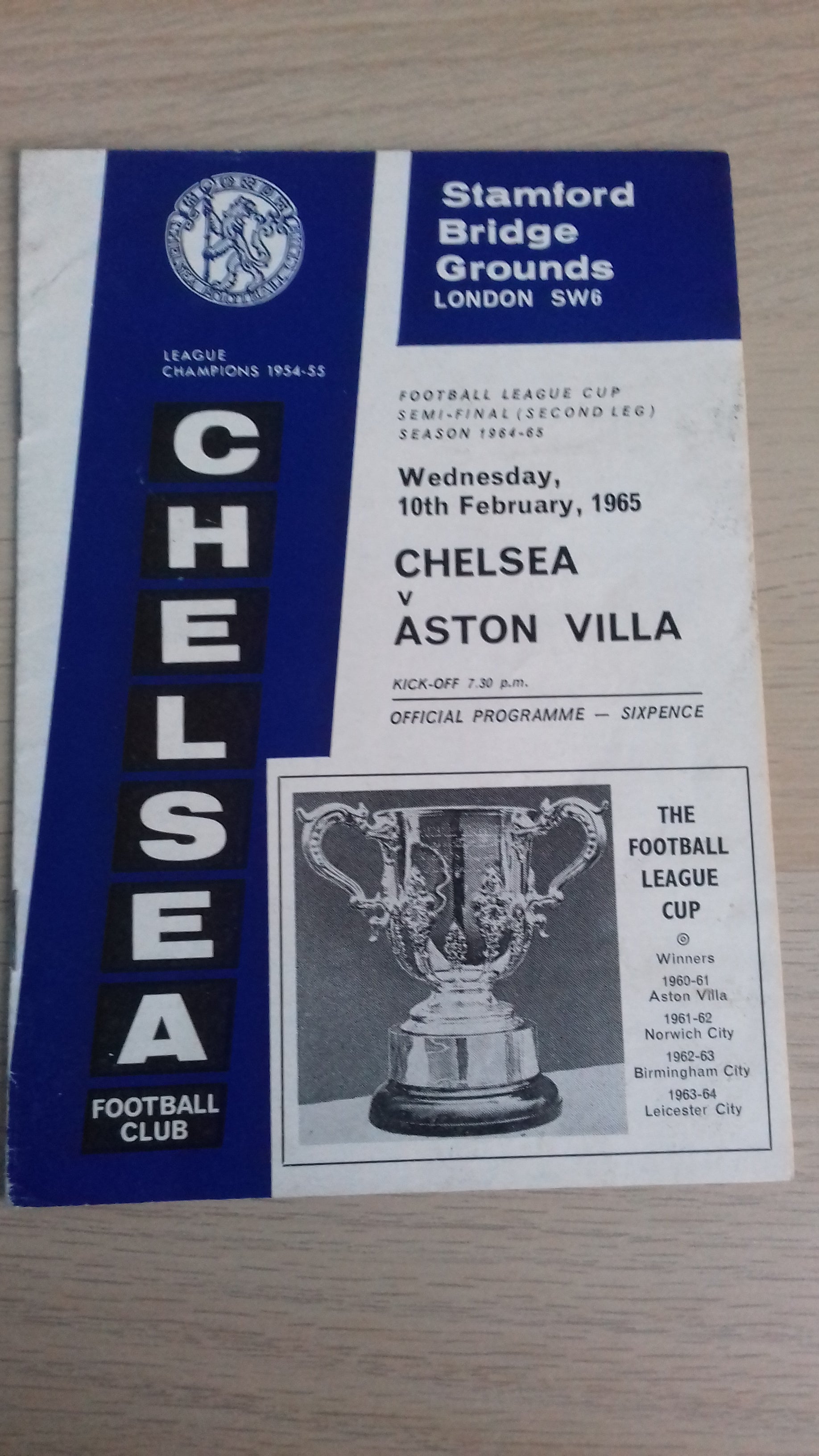 Vintage programme between Chelsea and Aston Villa League Cup Semi-Final 2nd Leg played at Stamford Bridge on 10th February 1965.