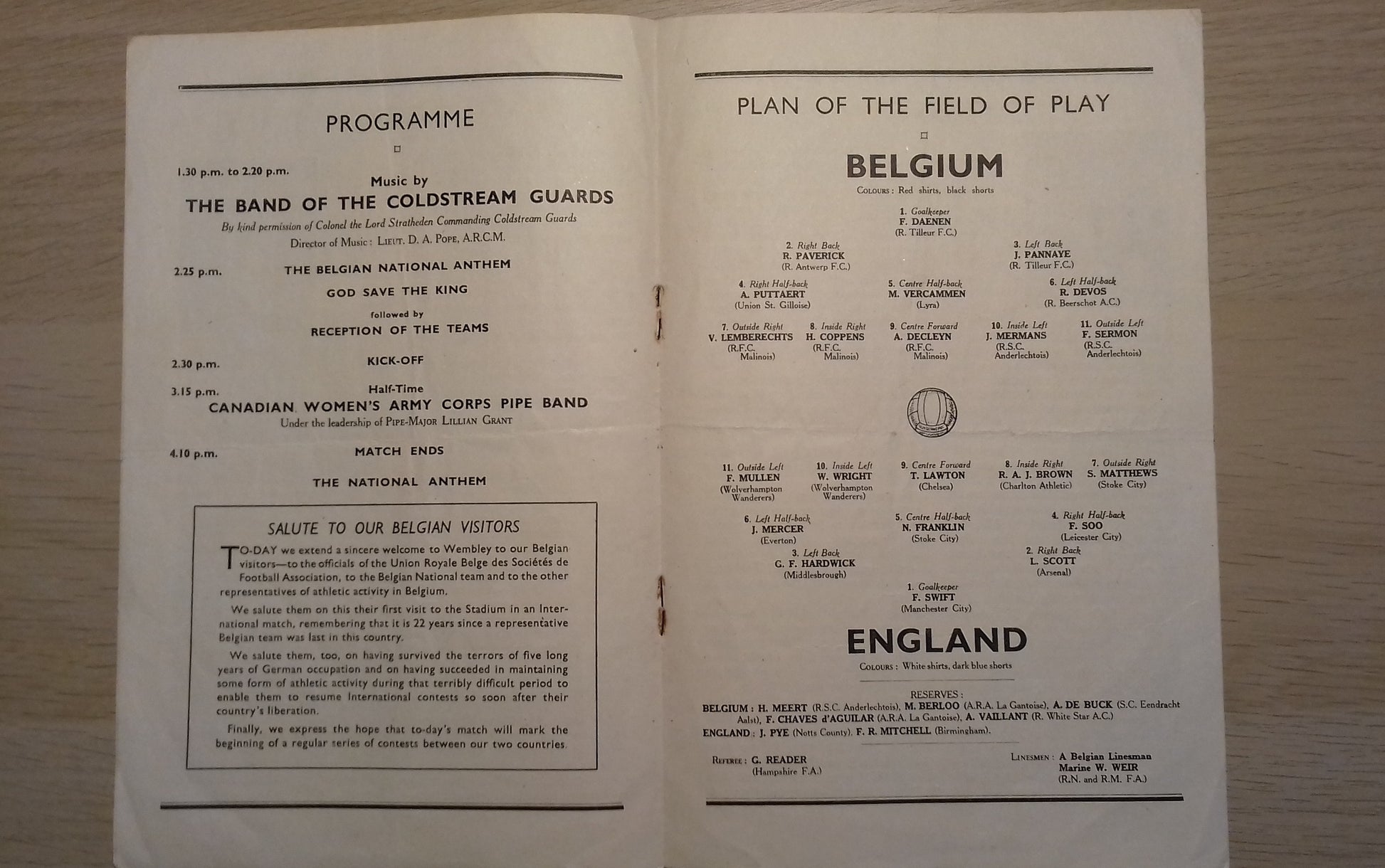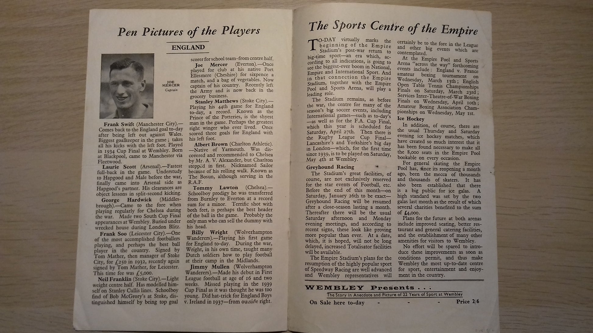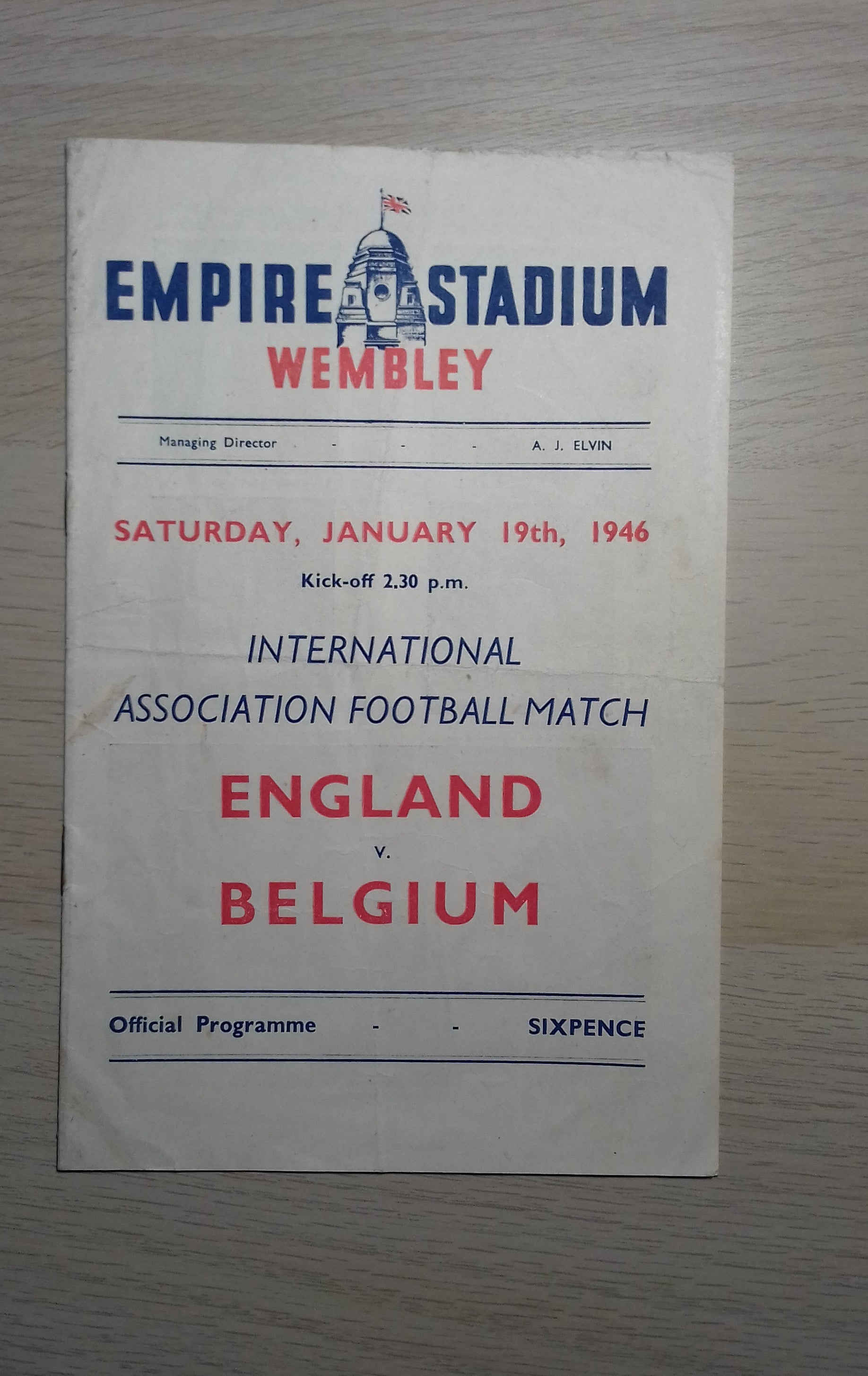 England v Belgium Match Programme Saturday 29th January 1946 Billy Wright Debut
