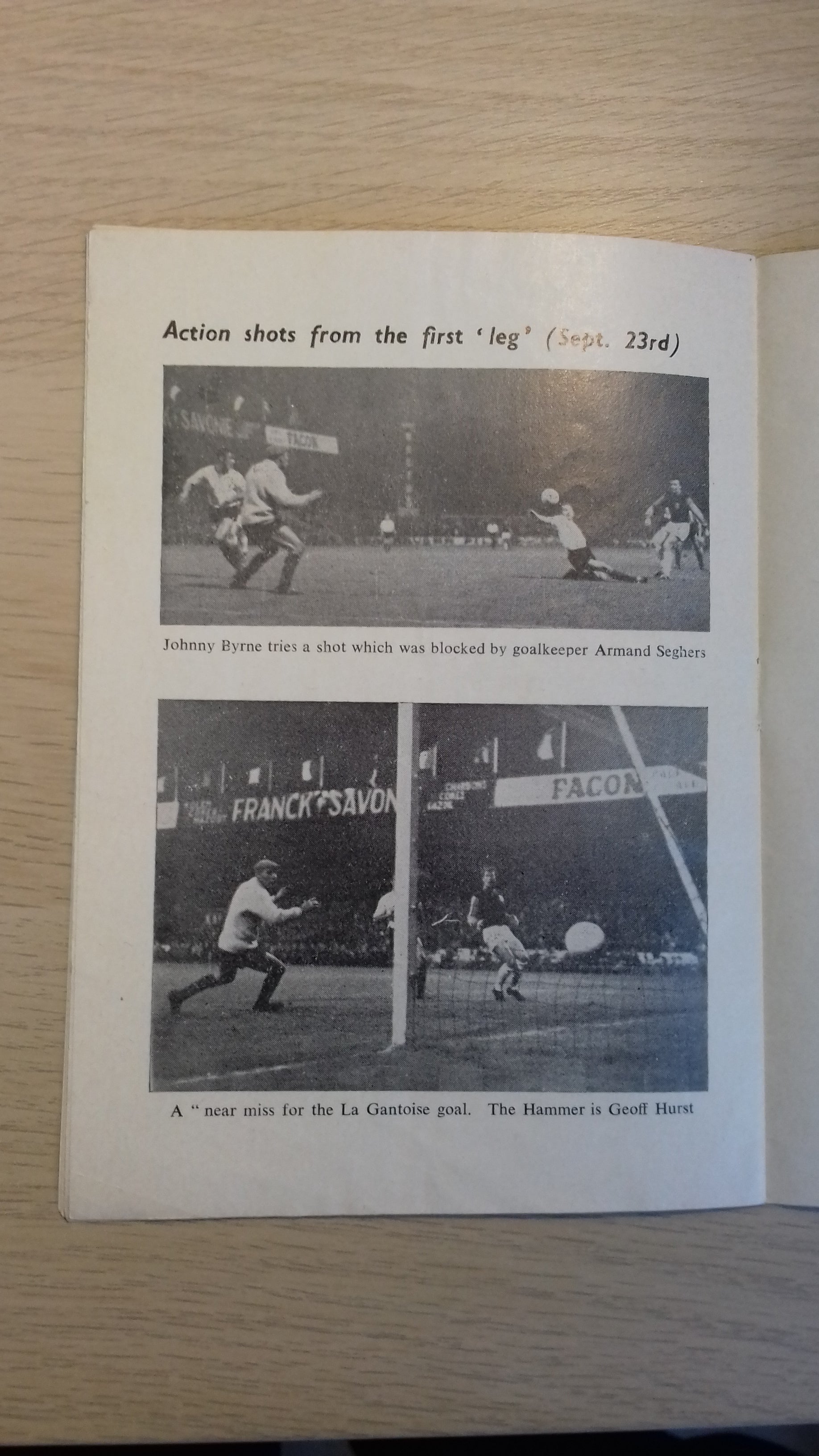 I have for sale a match programme for the European Cup Winners tie between West Ham Utd and A.R.A Gantoise on 7th October 1964.